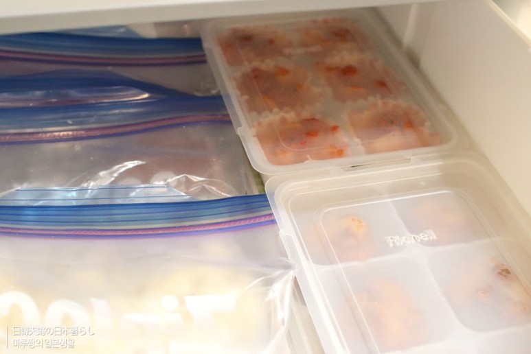 일본생활을 하면서 정말 색색컬러의 소분 냉동 케이스를 오프라인에서 많이 발견할 수 있는데요,
