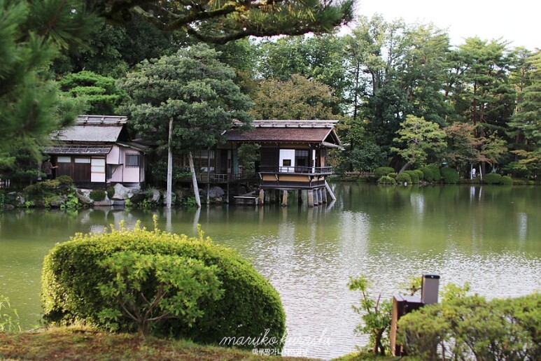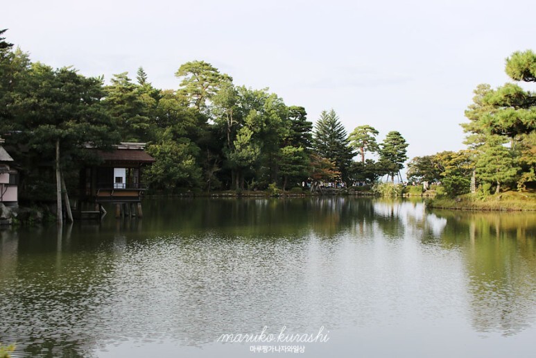 카스미 연못은 , 앞서 소개해드렸던 유키즈리의 시발점 나무인 카라 사키마 츠가 존재하기도 하고, 겐로쿠엔의 중앙에 있는 큰 연못입니다. 그곳에 보이는 연못에 떠있는 찻집(식당)이자 기념품 파는 곳이 바로 이번 포스팅에서 기록할 우치하 시테이입니다.