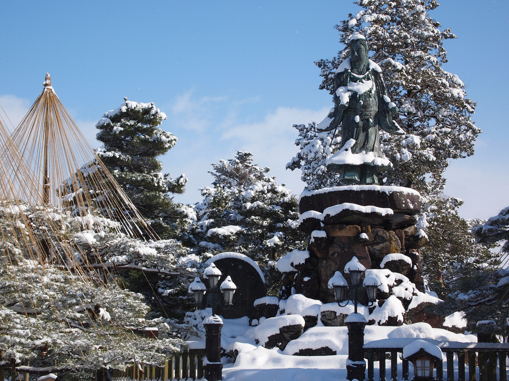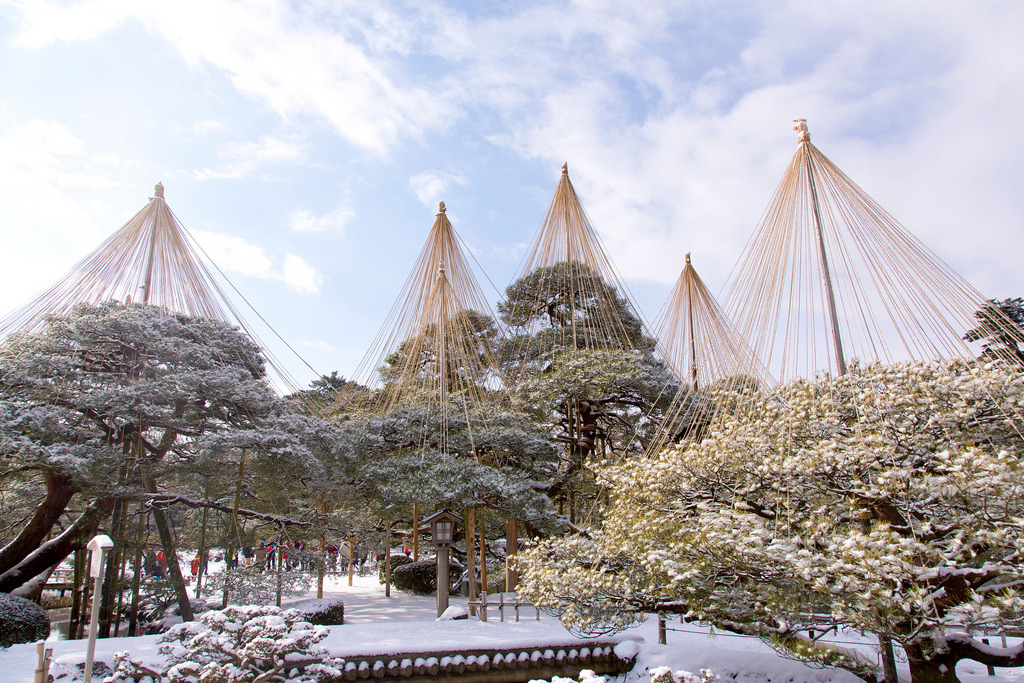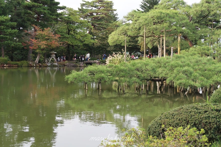호쿠리쿠 지역의 겨울 풍물인 "유키즈리"가 설치되는 시작점은 바로 이 겐로쿠엔의 카라 사키 마츠로부터 시작됩니다.