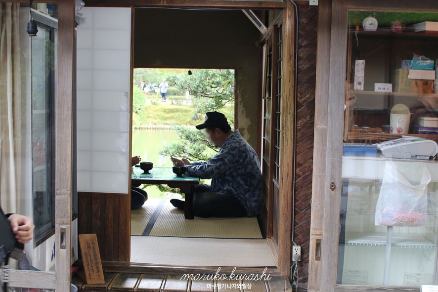겐로쿠엔을 산책하고 돌아가려고 할 때 즈음, 언제나 눈에 들어오던 카스미 연못 위에 떠있던 어떤 작은 찻집. 일반 식사도 가능한 가게였기 때문에, 이른 저녁 한 끼를 먹을 수 있을까, 하여 방문했지만 이곳의 마감 시간을 미처 숙지하지 못한 상태였었어요. 그래도 마지막 손님으로 정말 간당간당하게 입점했습니다.