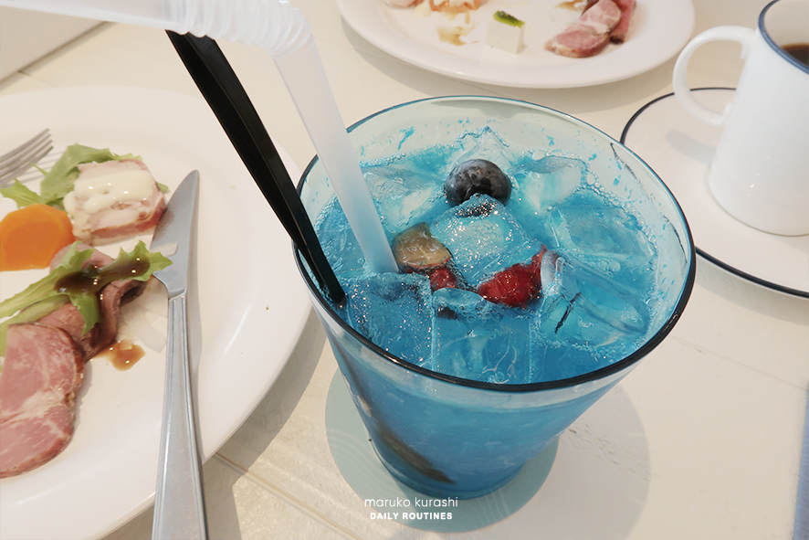 주문한 음료는 시선을 확 사로잡는 블루하와이 레모네이드 (아이스/550엔)