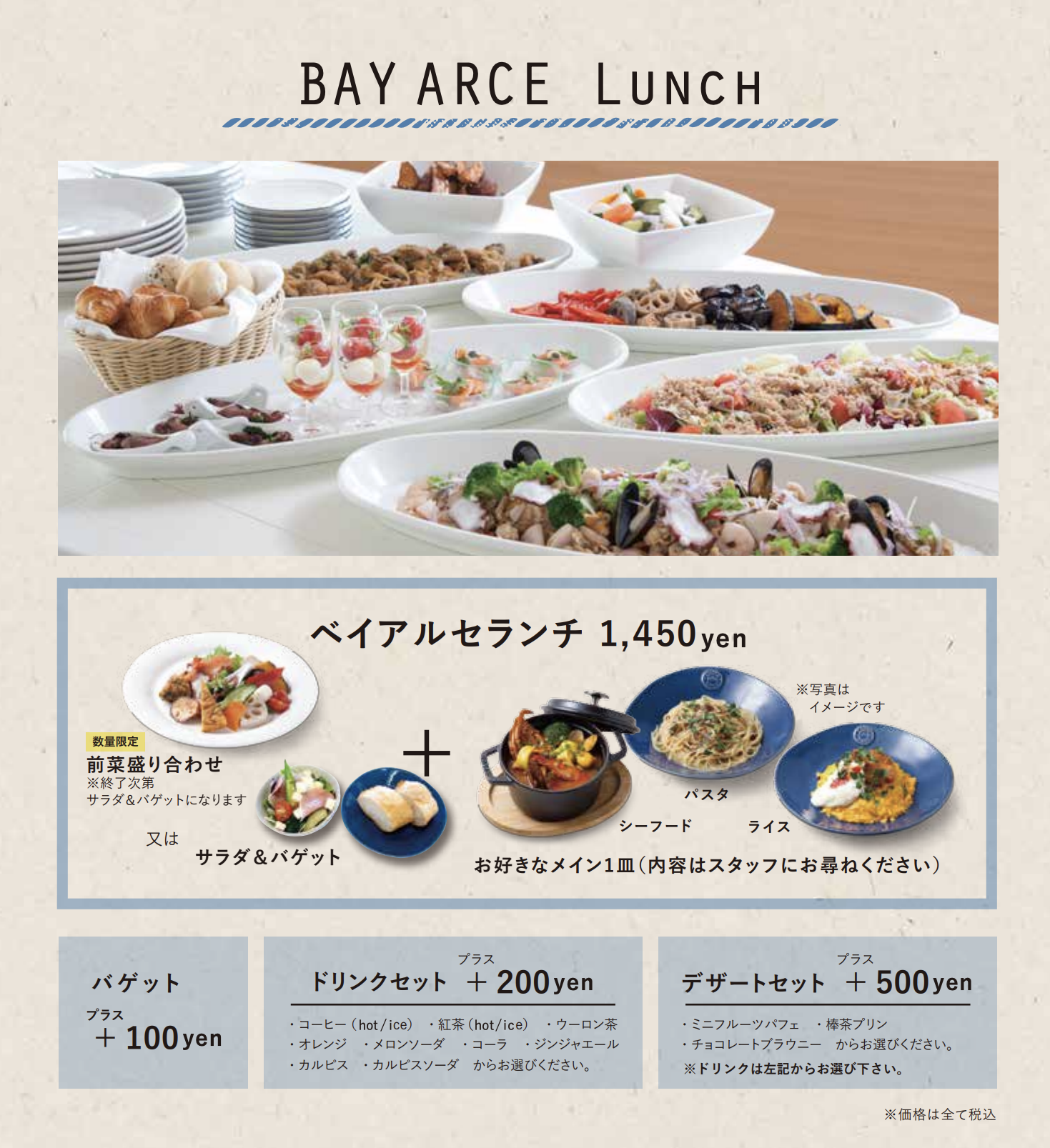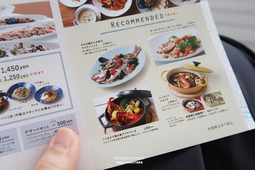 보시다시피 음료가 붙어있는 세트는 200엔 추가, 디저트가 함께 나오는 세트는 500엔을 추가해야해요. 빵을 더 주문할땐 100엔정도가 추가되니 먹을만큼 취향껏 주문하면 됩니다.