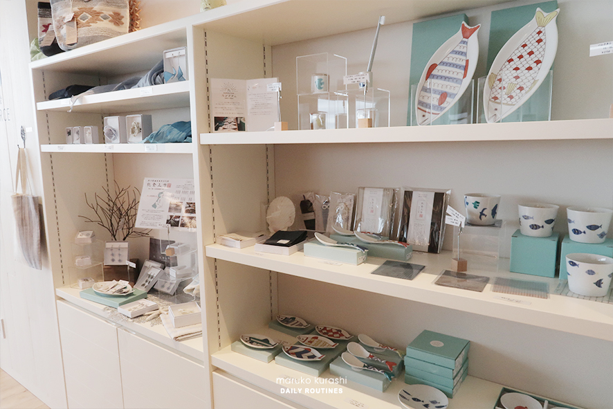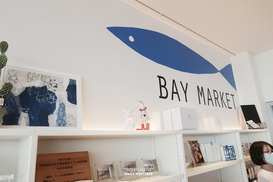 바다카페 바다식당인 베이아루세에 입장하면 우측에 이렇게 바다와 관련된 많은 식기, 잡화들이 진열되어 함께 판매하고 있는것을
