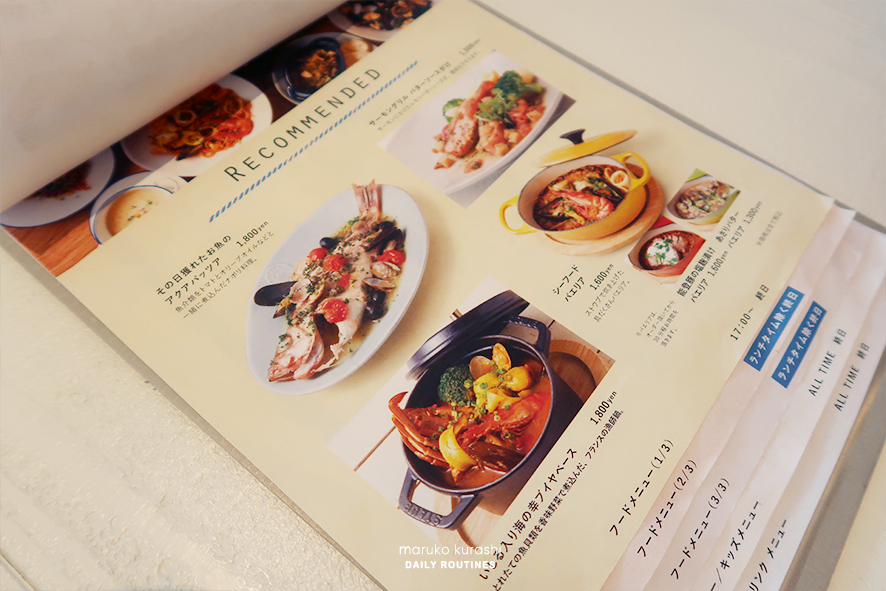 사진상의 고기는 이곳 바다카페의 간판메뉴라고 자랑하고 있던 그날 잡은 생선의 아쿠아팟챠(1,800엔) 였어요. 메뉴 사진만으로 이미 아는 맛처럼 느껴지고. 바게트는 따로 100엔정도면 추가할 수 있는데 , 수프이 담가 먹어도 좋을 것 같더라구요. (その日獲れたお魚の アクアパッツア1,800yen)