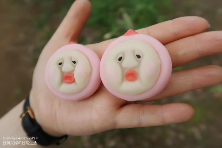 그러던 어느날, 너무나도 우스꽝 스럽고 익살스런 캐릭터의 와가시 가게가 싣리게 되어 남편에게 주말에 꼭 가보자고 이야기하게되었고,