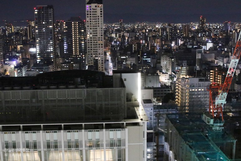 객실엔 침실쪽까지 합산해서 대형 유리 창이 4개정도가 보이고 , 그곳을 통해서 오사카 시내가 모두 내려다보입니다.