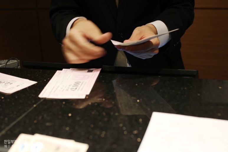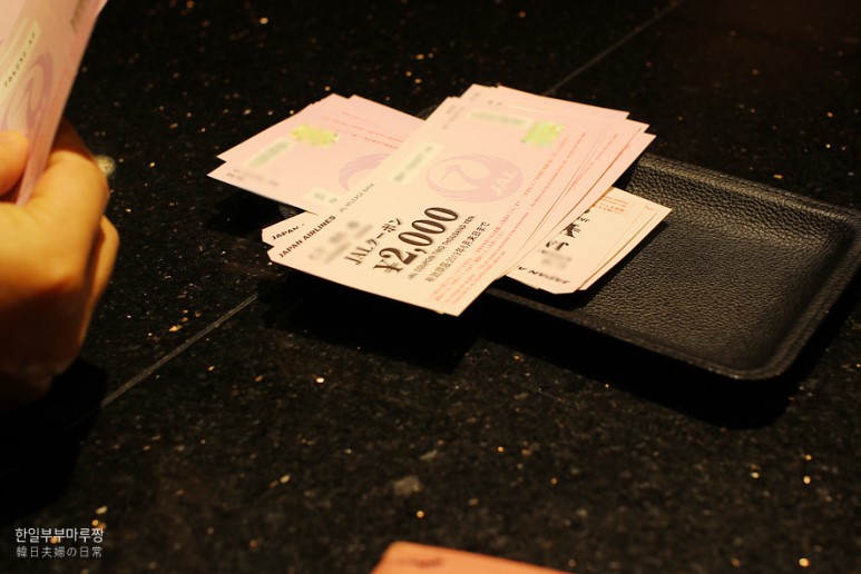 열광의 2박을 보내고 3일째되던날, 체크아웃을 하기위해서 오전일찍 2층 로비로 갔습니다. 지난번에 JAL쿠폰 소지 여부를 먼저 체크하고 객실을 이용할수가 있었지요? 저희는 JAL 쿠폰을 사용해서 객실을 이용할 예정이라고 미리 한국에서부터 전화연락으로 예약을 진행했기 때분인데요, 때문에 체크아웃을 할때에 계산을 위해 JAL쿠폰을 모두 꺼내서 직원분께서 한장한장 확인을 하고 계십니다.