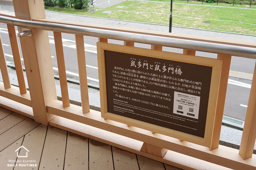 네즈미 타몬바시를 통해 가나자와성 안으로 들어왔을때에 모습입니다. 역시 이 건물 내부는 티켓을 끊고 들어갈수가 있고요, 저희는 따로 방문할 예정이 없었으므로, (예전에 들어갔었던 가나자와성 메인 메표소쪽 건물 내부 견학경험이있어서 비슷하지않을까? 하는 생각이 들었습니다.)