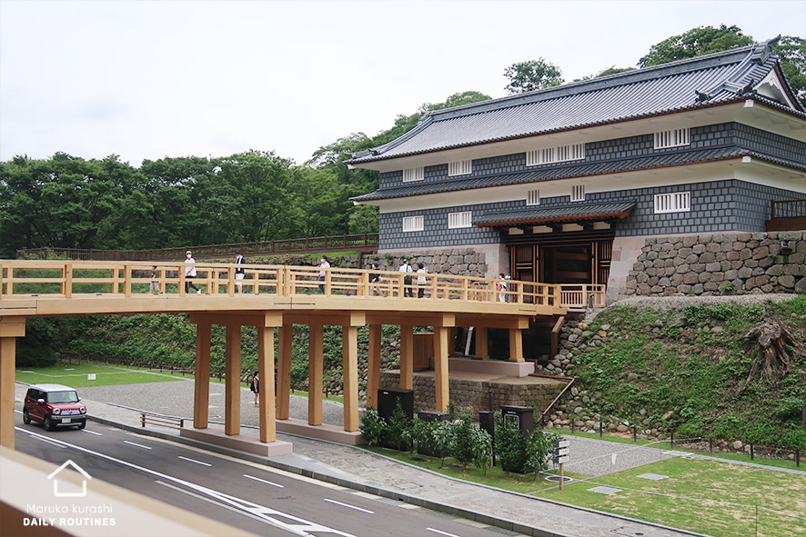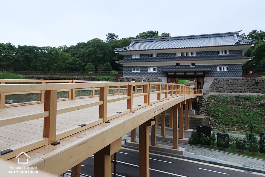 가나자와성의 서쪽, 메이지시대때의 화재로인한 소실 이후, 136년만에 당시의 모습을 복원된 네즈미타몬바시, 당시와 같은 위치에 143년만에 재현되어 지난 7월, 복구완료, 리뉴얼 오픈하고 오야마신사에서 가나자와성으로 바로 진입할 수 있는 건널목 역할을 하고 있습니다.