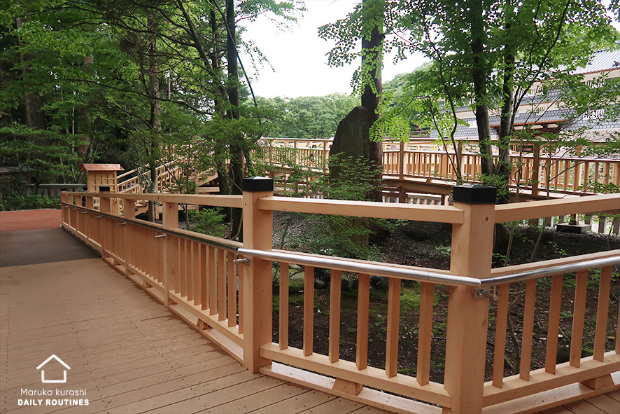 오야마 신사를 둘러보고 좀더 안쪽으로 깊숙하게 들어왔을때에는 드디어 멀리서봐도 새 내무로 만든 "나 새것이다" 라고 보여지는 계단과 작은 다리들이 이어짐을 확인 할 수 있었어요 .